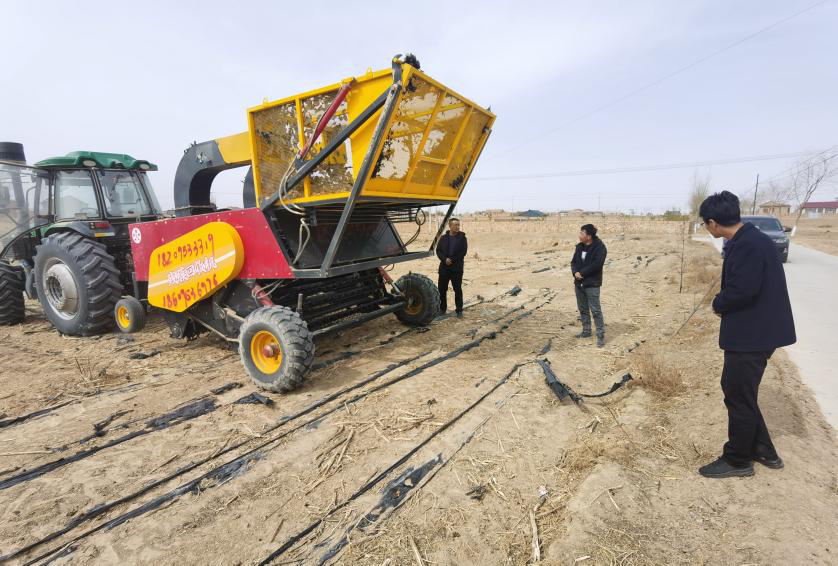 针对以上问题,县农业技术推广服务中心指导企业(合作社),先后从内蒙古等地引进两台较为先进的残膜回收联合作业机,分别对捡拾率、膜杂分离率、作业成本、作业效率、辅助用工等方面进行了新能测试,对比分析各机型的优缺点,从而选择出更合适本地残膜回收要求的机型。