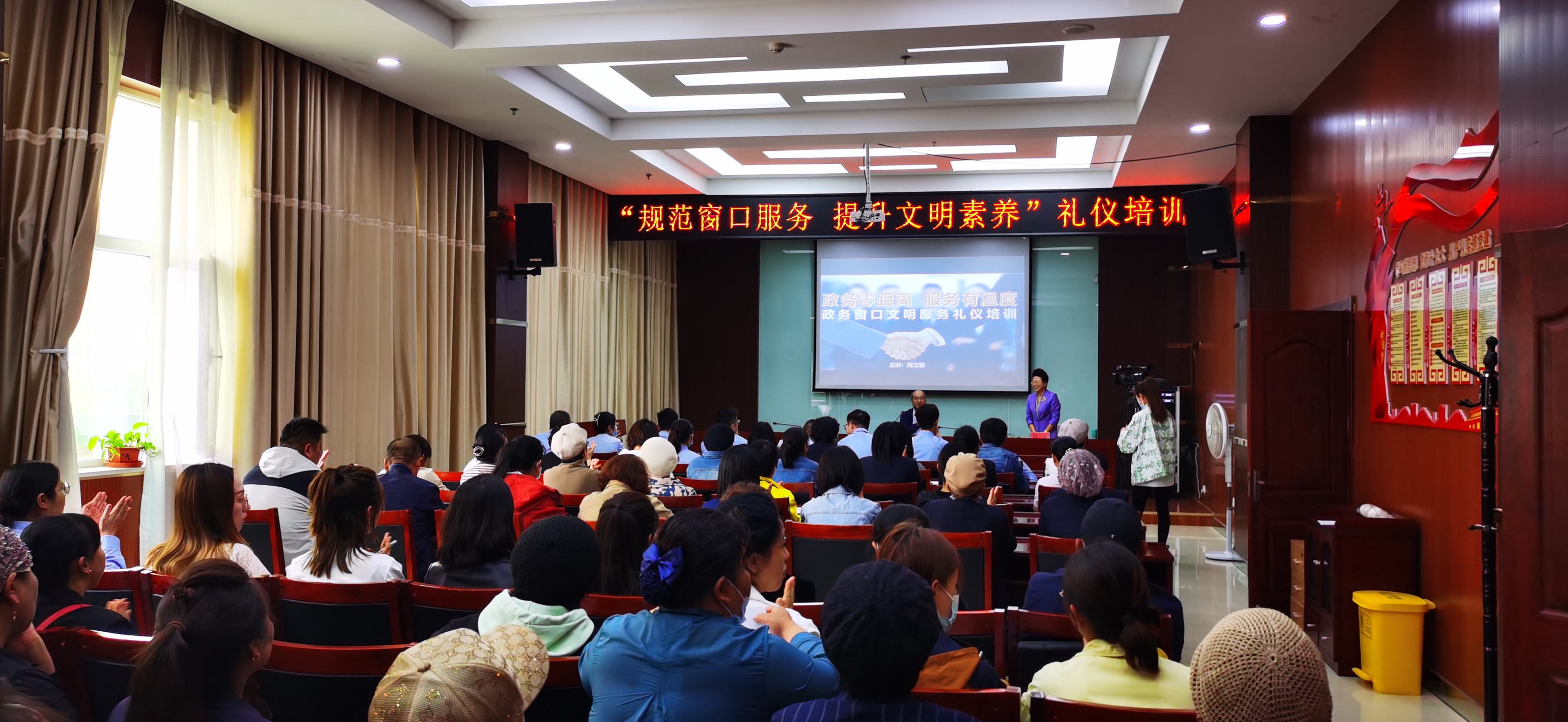 此次培训特别邀请了宁夏蓝迪文化传播有限公司高级礼仪培训师周立敏老师进行示范讲解,政务大厅窗口及政务服务中心100余名工作人员参加了培训。
