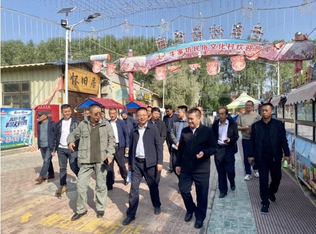 学攻坚做法,拓宽发展思路。牛家坊是有着“中国美丽休闲乡村”、全国“一村一品”休闲农业产业示范村。村党支部书记向大家分享了在民宿打造、文化的传承和保护、美食街建设等方面投入了大量的人力物力,克服种种困难,终于将牛家坊打造成远近闻名的“网红村”,不仅获得了生态红利,也获得了经济红利。驻村工作队实地走访了好吃街、民俗文化街、哈哈乐园等特色旅游景点,大家边走边看、互评互议,学习兄弟村的先进经验和特色做法,结合本镇实际,共同探讨交流乡村振兴的新路径、好方法。