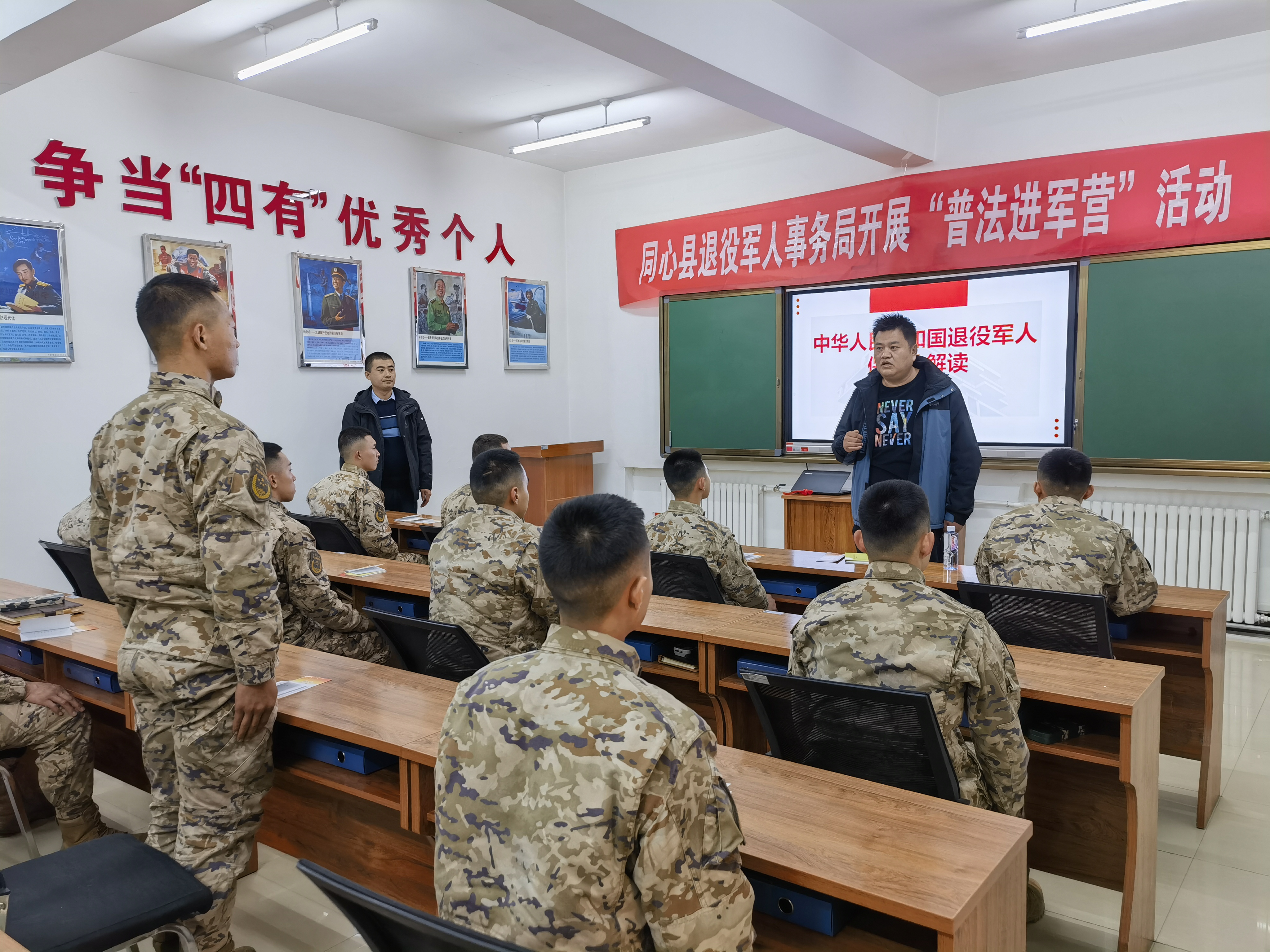 在县武警中队,县退役军人事务局组织开展“普法进军营”活动,详细解读了《中华人民共和国退役军人保障法》《中华人民共和国军人地位和权益保障法》颁布实施的意义、立法目的等,并结合具体事例,用通俗易懂的语言“以案释法”,帮助加深理解,引导驻地官兵运用法律武器,维护军人军属合法权益。