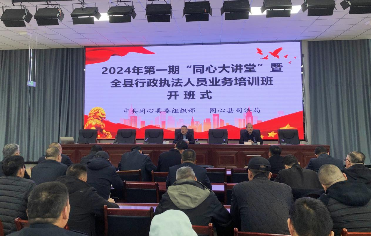 为深入推进依法行政,巩固我县法治政府建设成果,进一步提升全县行政执法质量和效能。3月14日至15日,同心县委组织部和县司法局联合举办了2024年第一期“同心大讲堂”暨全县行政执法人员业务培训班。全县38个行政执法单位的分管领导和行政执法业务骨干共计220余人参加培训。