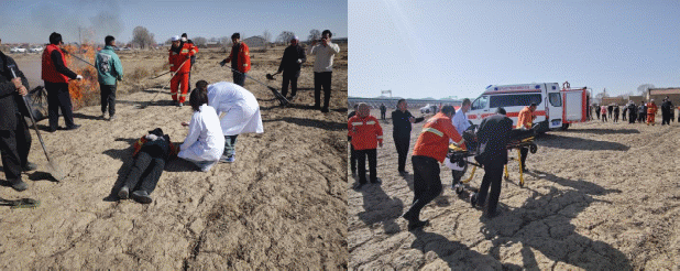 应急演练模拟护林员例行巡护过程中,在南塬村墩阳岗子附近发现火情,预旺镇围绕火情报告、先期处置、火场增援、火线救护等方面开展实战演练。