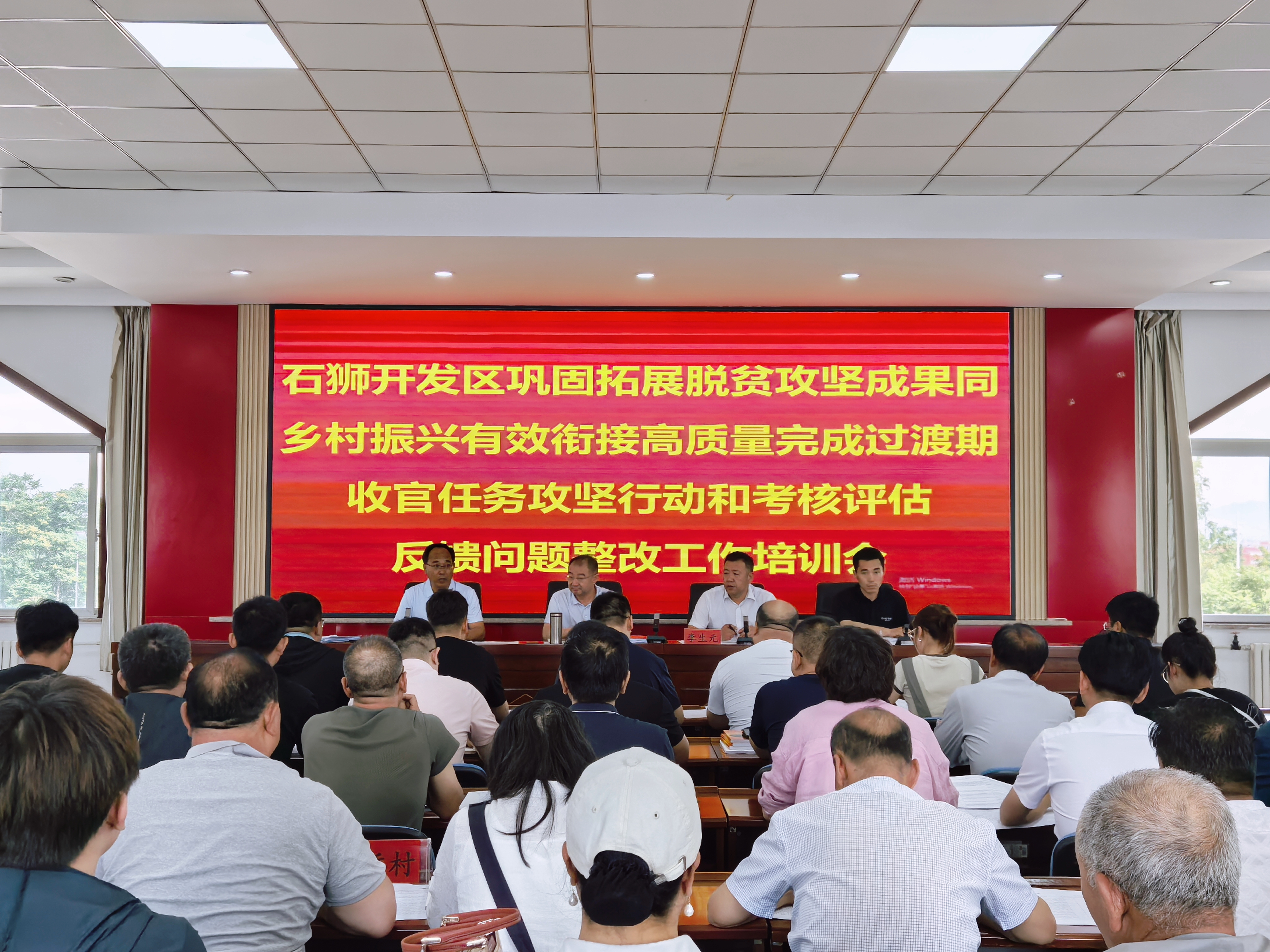 6月26日,石狮开发区召开巩固拓展脱贫攻坚成果同乡村振兴有效衔接高质量完成过渡期收官任务攻坚行动和考核评估反馈问题整改工作培训会,管委会全体干部、村“两委”班子、驻村工作队等140余人参加会议。吴忠市政协副主席马廷云同志、同心县委常委、政府副县长李生元同志到会指导开展培训工作。