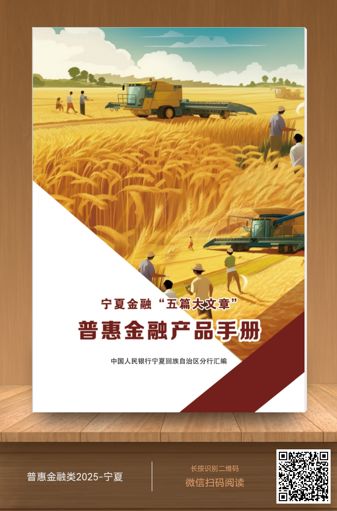 为进一步优化金融服务供给,帮助普惠领域市场主体更好了解信贷产品、对接专业人员、获取金融服务,中国人民银行宁夏回族自治区分行组织全区金融机构全面梳理并由中国人民银行吴忠市分行指导同心营管部制作《宁夏金融“五篇大文章”普惠金融产品手册》,该手册涵盖了全区50家主要金融机构266项信贷产品。有融资需求的市场主体可通过产品下方的联系方式直接咨询银行工作人员。