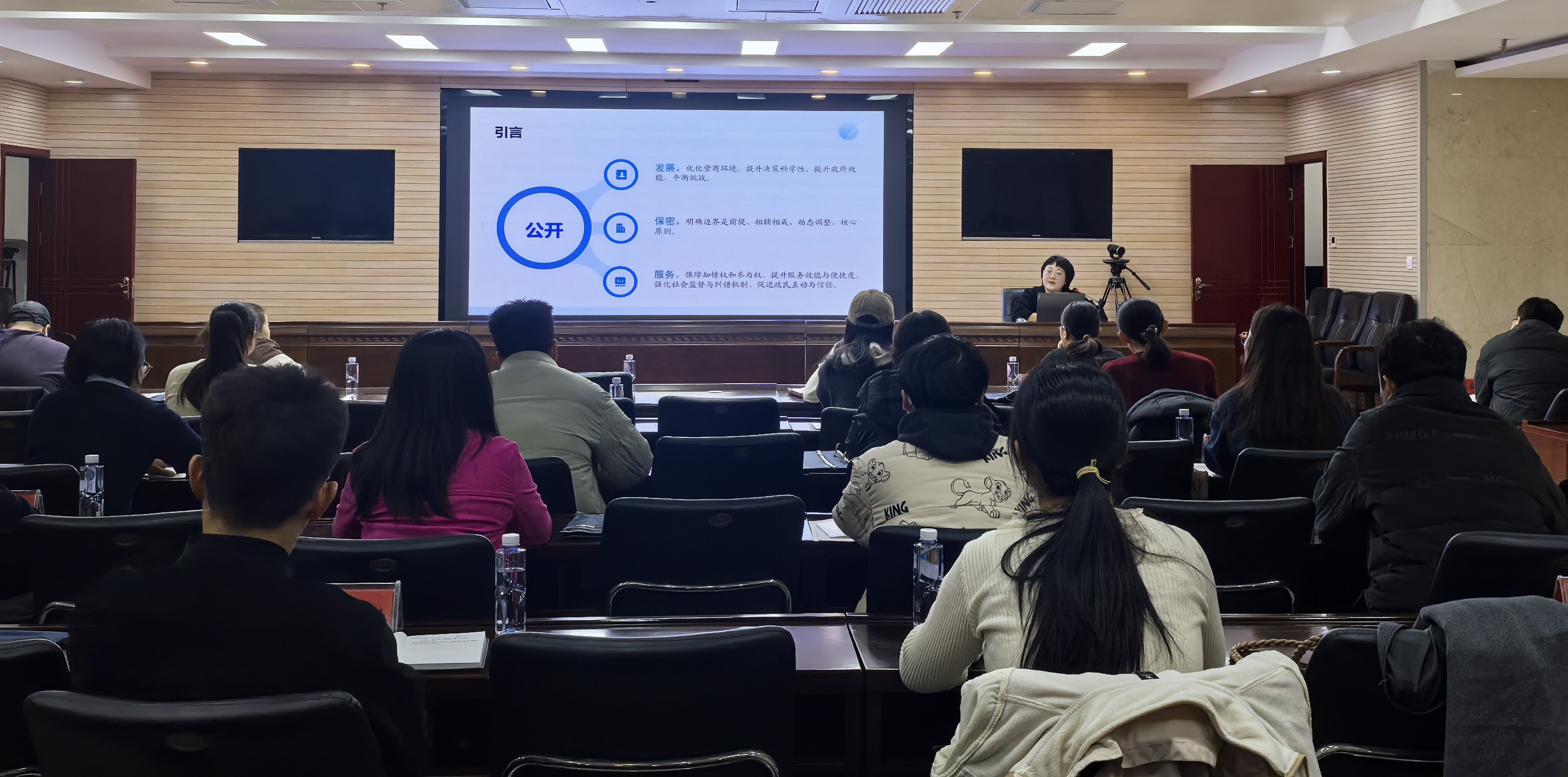 县政务公开办公室业务骨干围绕政务公开重点工作开展了系统的专题辅导。授课人员首先对《中华人民共和国政府信息公开条例》进行了细致解读,随后重点就政府网站运维管理作出规范指导,涵盖信息发布审核、内容保障、安全管理等关键环节。同时,进一步明确了政务新媒体的功能定位、运营要求及信息发布纪律。在依申请公开办理方面,结合真实案例,系统讲解了从接收、登记、审核、答复到归档的全流程操作要点与风险防范措施,有效提升了参训人员的业务能力和规范意识。