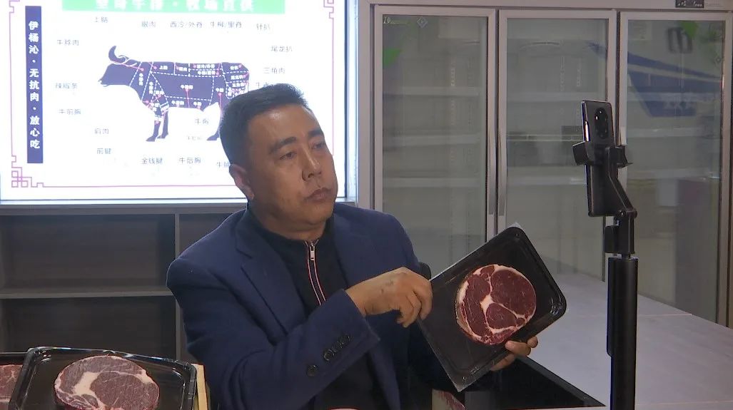 “直播间的家人们大家好,现在我给大家展示的这款牛排是我们伊杨沁安格斯上脑牛排……”走进宁夏伊杨沁健康食品有限公司,公司负责人杨坚正通过网络直播的形式向大家推荐自家产品,让大家看得清楚,吃得放心。