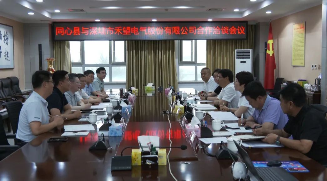 6月27日,吴忠市委副书记、县委书记王汉武主持召开同心县与深圳市禾望电气股份有限公司合作洽谈会,双方就新能源项目全面战略合作展开深入交流。