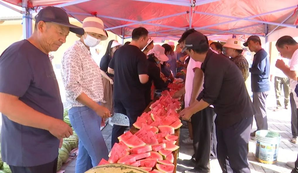 活动现场,前来参加“免费吃西瓜”活动的游客络绎不绝。展示区不仅有西瓜、还有羊肉、烩菜等美食,大家免费品尝的同时,还可以体验西瓜采摘的乐趣。除此之外,游客们还参观了北堡子红色教育基地和铸牢中华民族共同体意识主题教育馆。