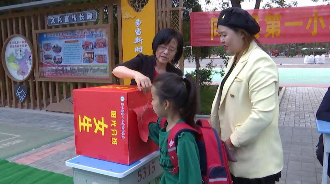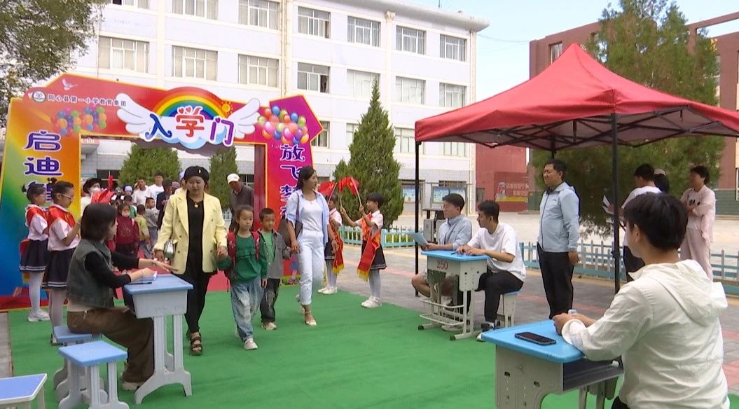 在县第三小学,家长们带着学生跨过“我们上学啦”之门,由家长代表抽取班主任老师,确定各班班主任老师后,学生家长带着孩子按照次序抽取班级,随后进行报到登记,全校342名一年级新生被均衡分到了8个班级中。