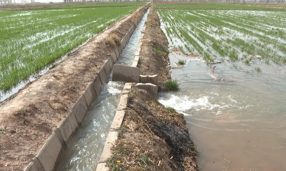 随着潺潺清流进入田地, 生长了1个月的麦苗喝上了“第一口水”。村民李兴忠两天前就对渠道进行了全面清理,施完肥后,便等待着小麦的头茬水灌溉工作。