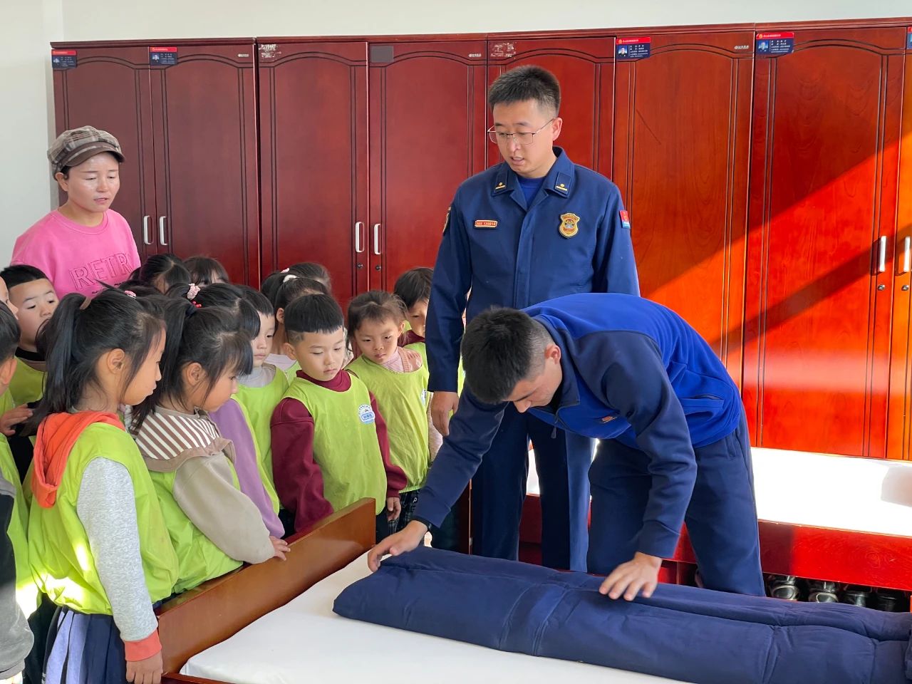 体验中,消防员首先为孩子们讲解了消防服的穿戴方法,并让他们试穿了消防服。紧接着,消防员带领孩子们参观了消防车,了解了消防装备。走进消防员宿舍后,消防员叔叔现场给孩子们演示了被褥整理,有棱有角的被褥赢得了孩子们的掌声。