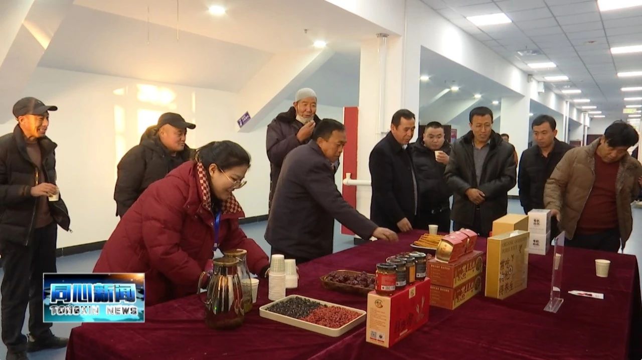 12月19日,记者在新区体育馆二楼的观众通道口看到,通道两侧摆满了各类农特产品。参加展销的工作人员告诉记者,本次农特产品共有48种,有红葱酱、小杂粮、馓子、同心圆枣、八宝茶、枣夹核桃、枸杞原浆、胡麻油、碗蒸羊羔肉等,引得观看篮球赛的观众不时驻足品尝。