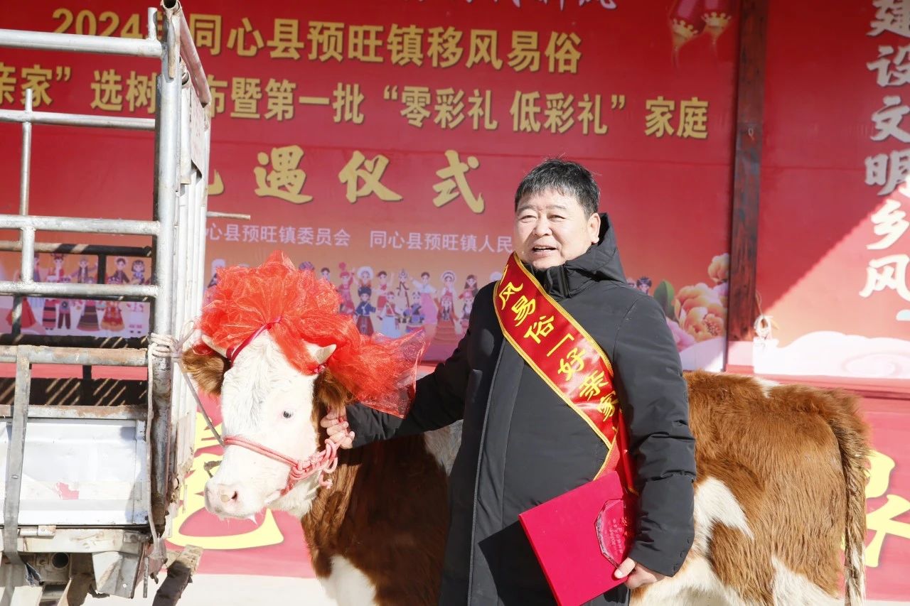 据了解,此次预旺镇颁发的第一批“零彩礼 低彩礼”家庭礼遇仪式大礼包,主要是给“零彩礼”“低彩礼”女方父母奖励一头牛、1000元现金奖励、享受10万元以内妇女创业贷款贴息政策、户籍内人口3年免交医疗保险、在“农村妇女创业担保贷款”“巾帼创业贷”优先提供服务、优先聘用公益性岗位,提供健康体检服务等六重大礼。