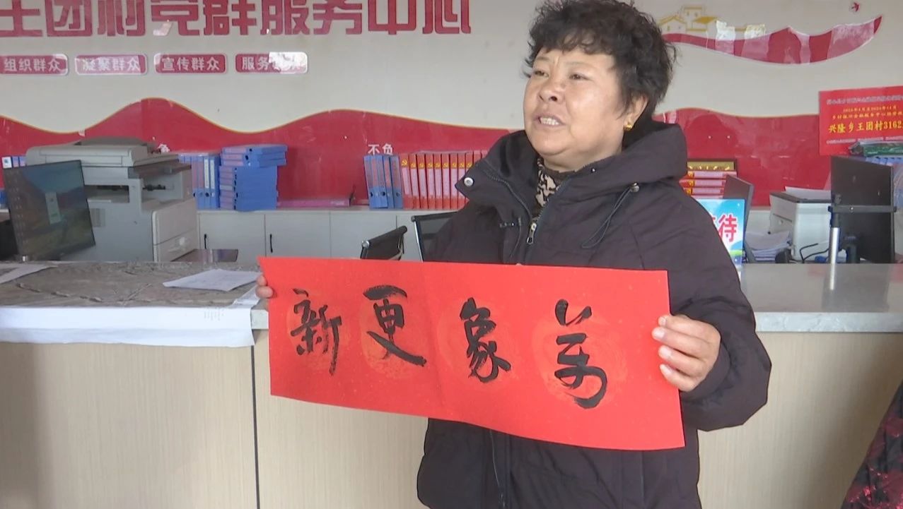 兴隆乡王团村村民 王玉莲:我们收到文联送的春联了,我们心里很温暖、很高兴。