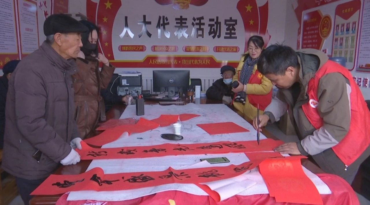 县书法家协会主席 马彦文:我们县文联这次下乡写春联、送春联,表达我们对村民的祝福,同时又营造了浓浓的节日氛围,也对传统文化的弘扬起到了一定的作用,受到了老百姓热情欢迎。