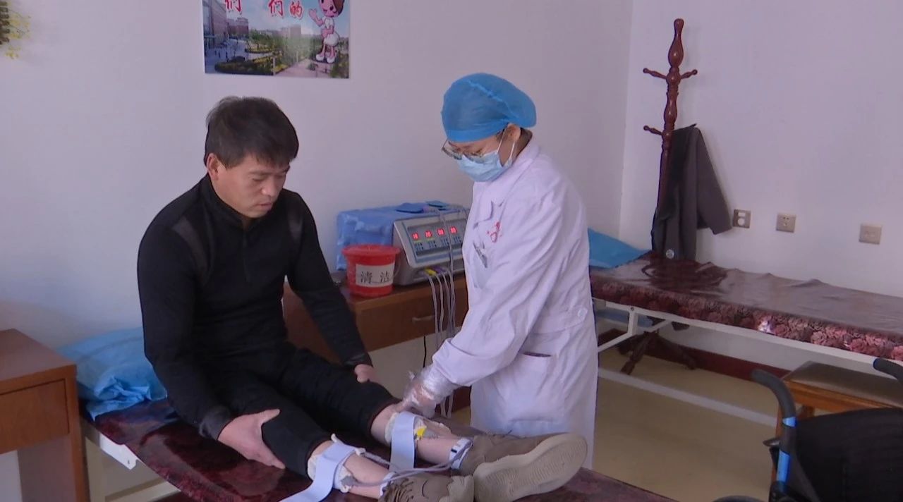 走进县残疾人托养服务中心治疗室,记者看到纪林正在接受物理康复治疗。康复师首先将纪林的双腿进行固定后,再通过“中频治疗仪”输出的电流刺激他的双腿肌肉,从而达到缓解疼痛、促进血液循环、肌肉恢复的作用。对于双腿瘫痪的纪林来说,自从接受了物理康复治疗后,他小腿肌肉逐渐萎缩的情况已经有了好转。
