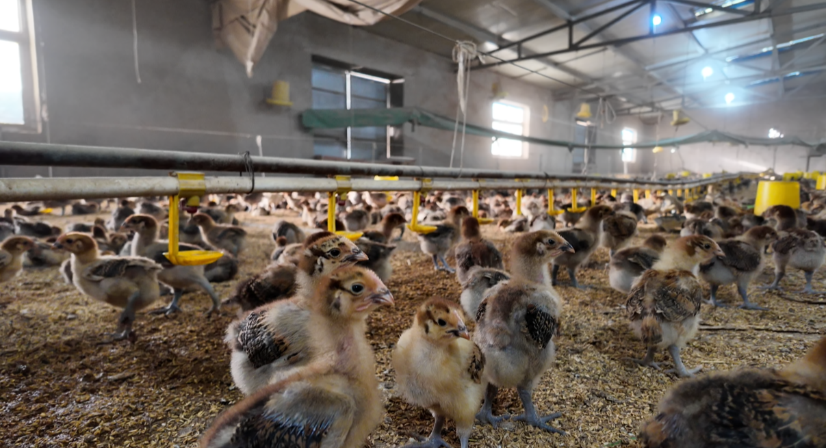 舍内雏鸡叽叽喳喳,马彦明熟练地将颗粒饱满的玉米均匀撒入食槽,数千只鸡崽争先恐后围拢过来,吃得津津有味。马彦明告诉记者,这批鸡苗从广西引进,经过精心照料,预计一个月后即可出栏,销路已覆盖本地及甘肃、陕北等地。
