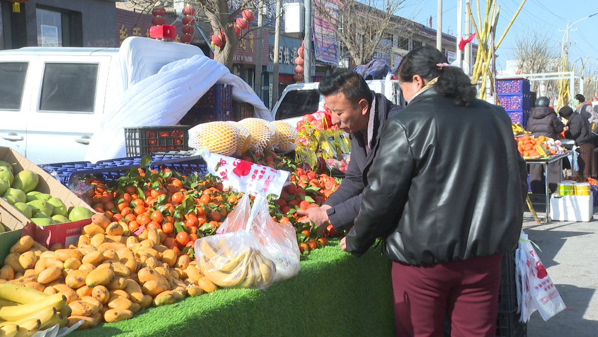 集市上的年货琳琅满目,新鲜水灵的瓜果蔬菜码放整齐,坚果炒货的香气随风飘散,核桃、杏仁、瓜子等干货成为家家户户的必备,对联福字摊位前格外热闹,红纸黑字的春联、寓意美满的“福”字和马年主题的剪纸,让群众一站式购齐新春装饰。