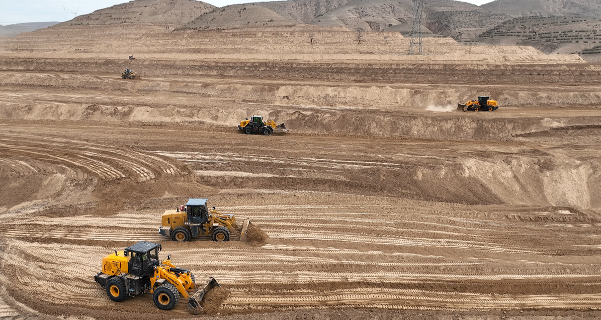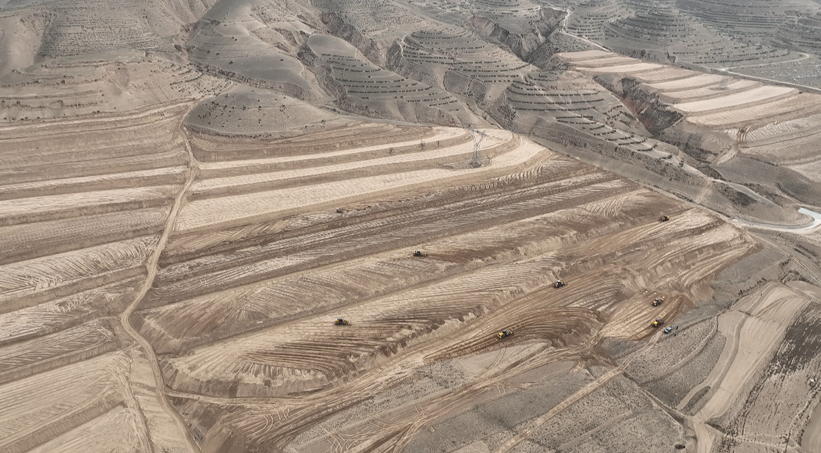 近日,记者在王团镇吊堡子村小流域综合治理项目现场看到,近20台装载机、推土机同步作业。放眼望去,连绵的黄土坡被机械“梳理”出一道道整齐的等高线。装载机铲起黄土、推土机推平压实,原本坑洼不平、一下雨就冲沟跑土、根本没法耕种的撂荒坡,正一点点变成平整连片的水平梯田。