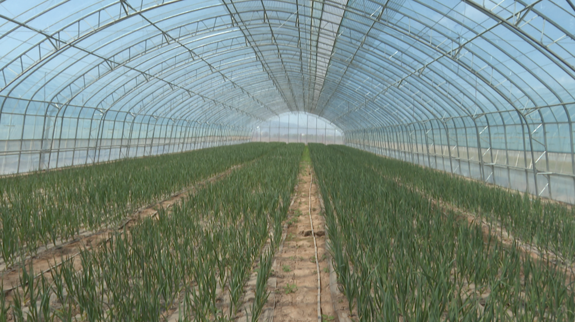近日,走进下马关镇现代设施农业基地,一排排温棚整齐划一,棚内绿意盎然,23座试验温棚里的大蒜长势喜人,翠绿挺拔的蒜苗已长至35厘米左右,土壤下的蒜柱也进入亚成熟状态,一派丰收在望的景象。
