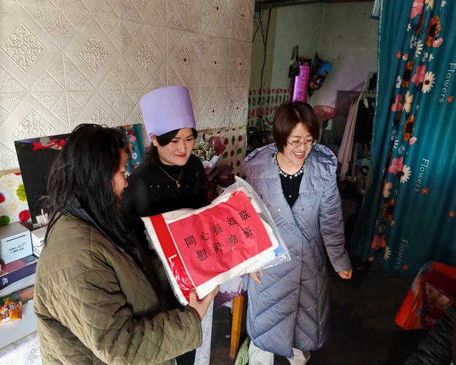 每到一户,慰问组都为困难党员群众送上大米、白面、食用油和慰问金,镇妇联、团委还向困境妇女儿童送去冬衣、书包和爱心大礼包,让大家在寒冬中感受到浓浓的暖意。