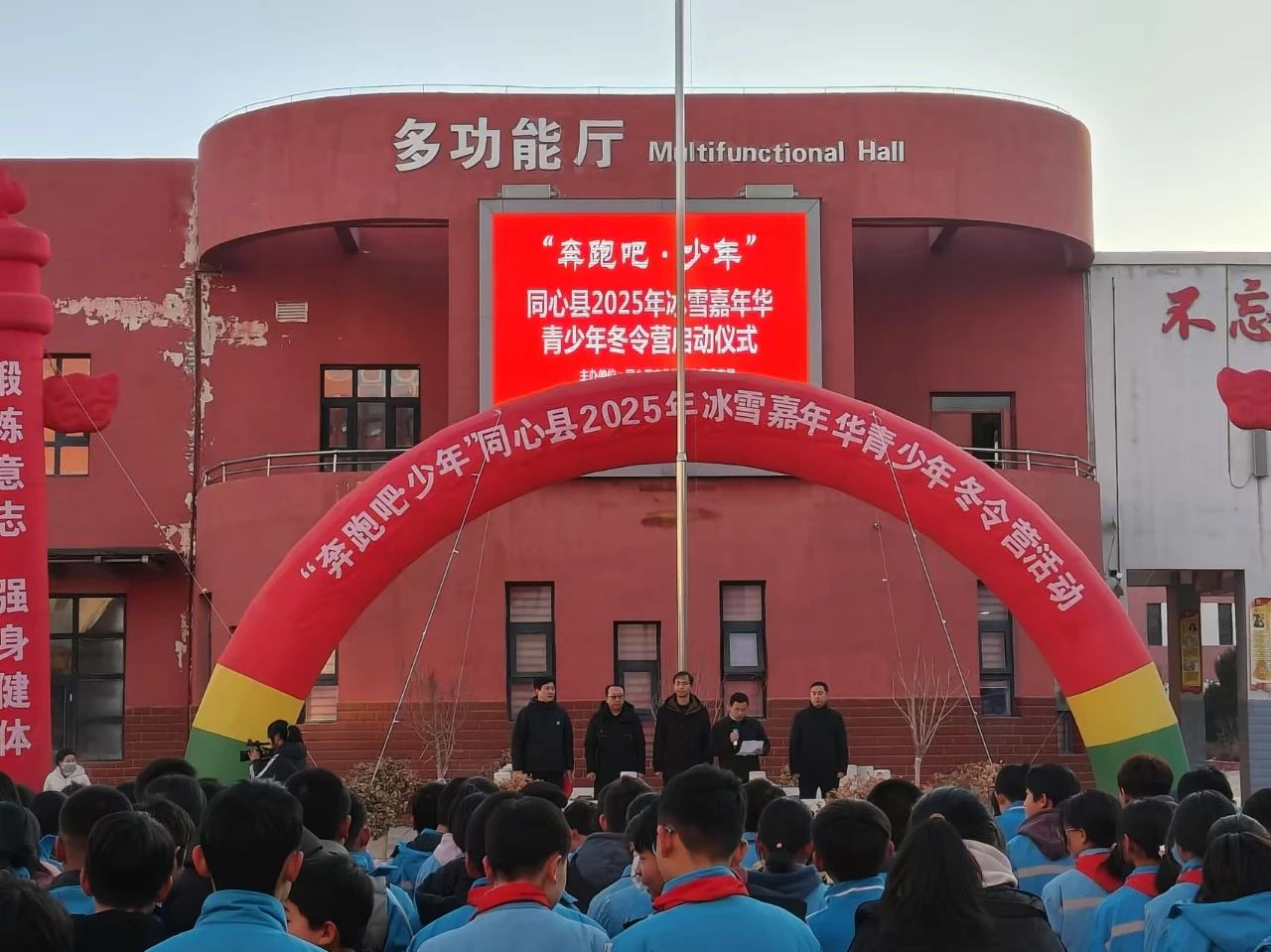 1月8日上午,“奔跑吧·少年”同心县2025年冰雪嘉年华青少年冬令营活动正式开营,思源实验学校1000余名师生共同参与。