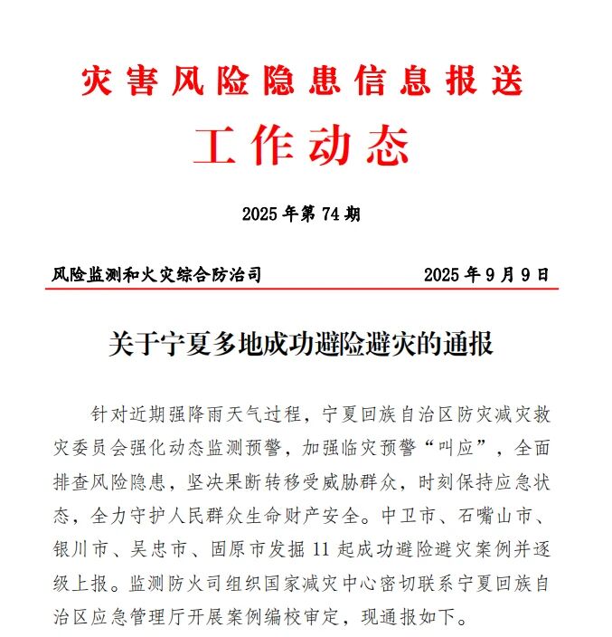 8月1日,吴忠市同心县出现强降雨过程,15时52分同心县气象台发布暴雨黄色预警,县安委办立即部署重点区域巡查与应急值守工作。王团镇迅速响应,组织镇村干部对辖区水库、淤地坝、堤防、河道及过水路面等重点区域开展拉网式排查。16时15分,王团镇虎湾子村灾害风险隐患信息报送员虎林在巡查时发现,清水河王团段有少量洪水出现,根据多年防汛经验判断,水位将急速上涨,洪水极可能冲毁下游过水路面,威胁沿岸300户村民及1000亩玉米地安全,于是立即上报。接报后,镇政府紧急调拨编织袋、救生衣、沙袋、铁锹、橡皮艇等防汛物资,配合公安部门对过水路面实施交通管制,防止车辆、人员误入,组织村干部逐户核查登记常住人口,通过“敲门叫应 ”确保转移通知全覆盖。19时20分,洪水下泄,过水路面完全淹没。因隐患发现处置及时,无人员伤亡。
