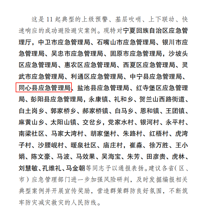 | 标 题: | 同心县王团镇成功避险洪涝灾害案例受应急部通报表扬 | ||